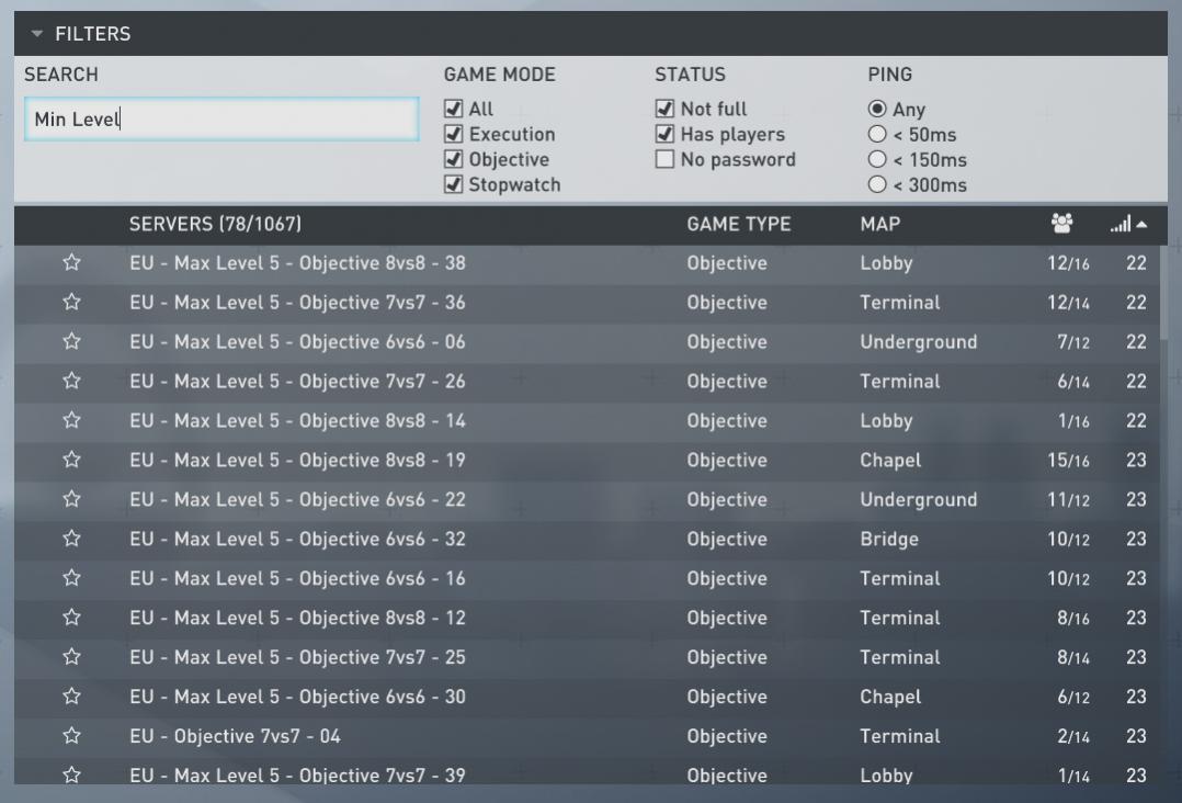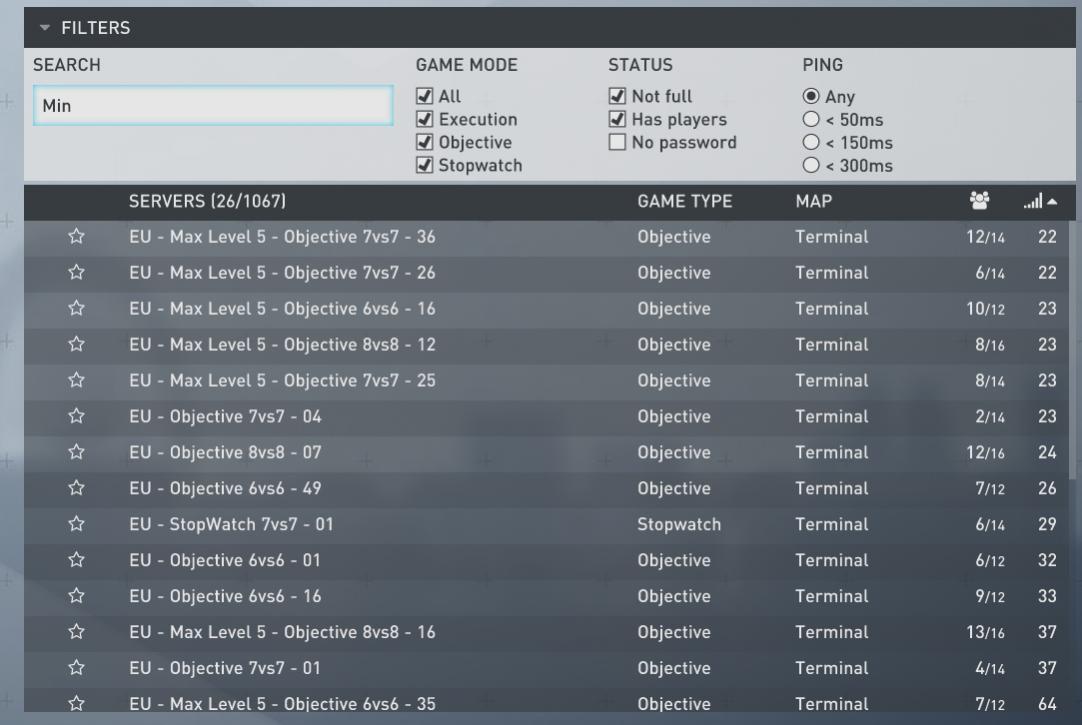 Also, the text filter doesn’t seem to work properly in the server browser. e.g. none of the following work: