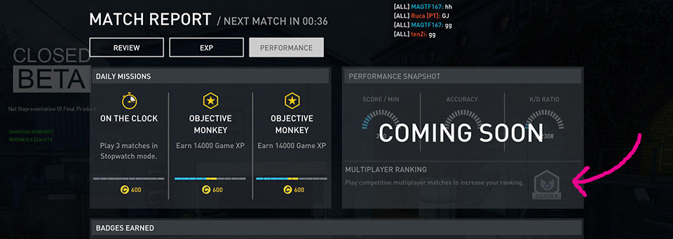 It would be nice to have some transparency on your ranking which goes into the matchmaking system. So this is my suggestion: