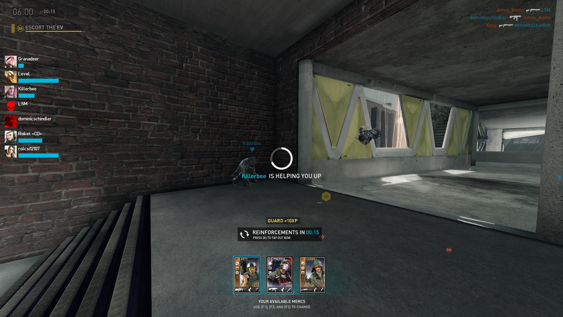 not sure why the EV moves … but i get revived (helped up) inside the EV and after finished i got moved to the possition of my (invisible)corpse