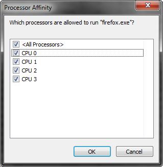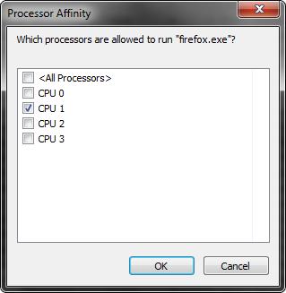 In the previous example we are running with affinity on 1 core. (like in the screenshot below)