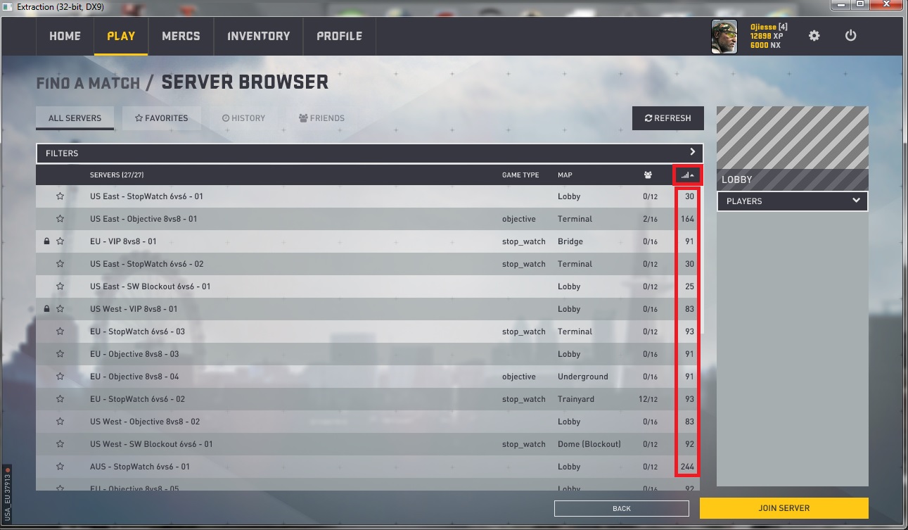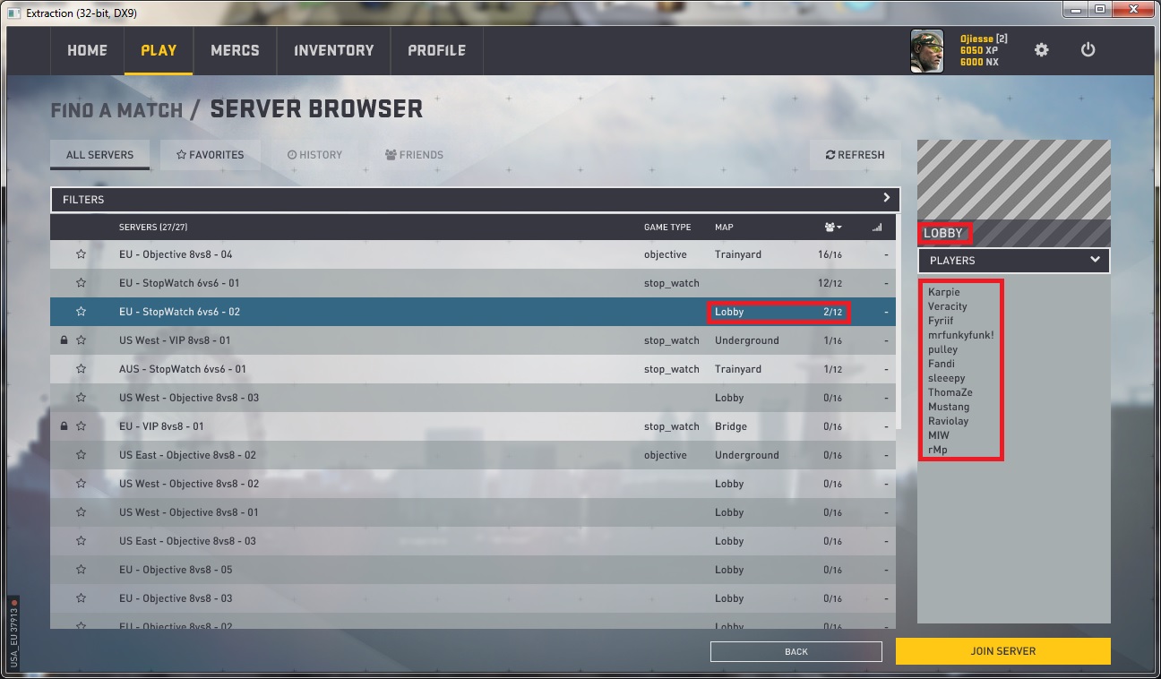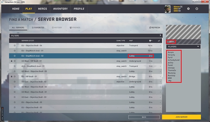 Also, if you select a server that is populated but still in the lobby, the player list does not update, it shows the player list from the last server you checked out.