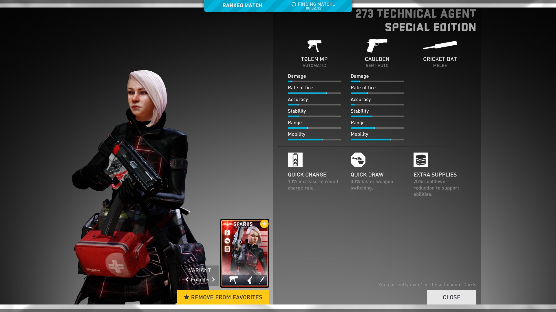 Hello sparks, got the exactl same one… but I don’t use her in favor of companion agent which has get up instead of quick draw, tho I’m not sure: