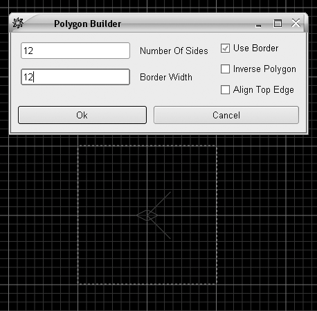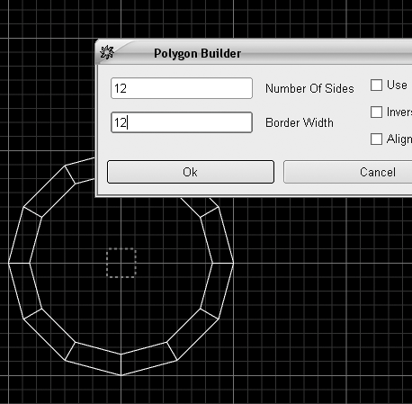 Then add another brush of small size. Open the polygon builder and enter the same values, DON’T THICK USE BORDER: