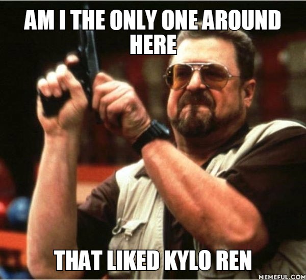 I thought it was kind of cool to show how the dark side can affect those so closely linked to the light side. Shows the danger of pent up anger and stuff. So I think they could do some cool stuff with Kylo. I’m not writing him off yet. I’m fine with [spoiler]Han dying. It made this movie have consequence. Still sad though.[/spoiler]