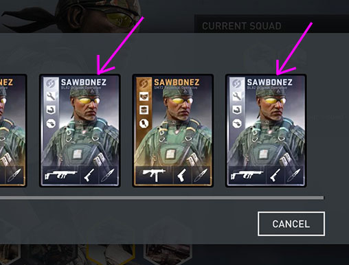 It would be wise not to show any duplicates while choosing a squad. It is redundant and will make the player lose time, which is important if doing it in the lobby.