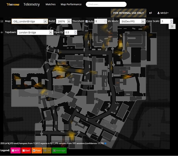 You may notice that even from only 101 sessions played since the release of build version 20076 we’ve collected nearly 1 million data point samples, so thanks to everyone for your contributions in helping us by playing the game.