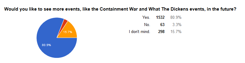 @Ctrix Maybe, but I saw many, MANY comments prior to the survey, saying something along the lines of “don’t do more events like CW and WtD!”, hence the inclusion of the question.