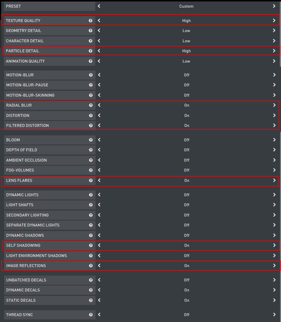 Fairly annoying (especially when I forget to reset them). These options always get set back to on / highest settings every update (in red):