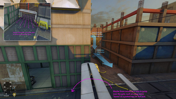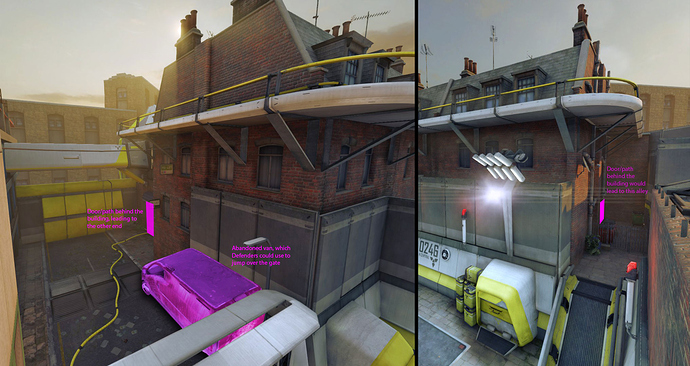 I’m leaving here an idea(s) for the Trainyard’s last Defenders’ spawn (and alternative path). An area where Attackers couldn’t get in and neither spawn camp.