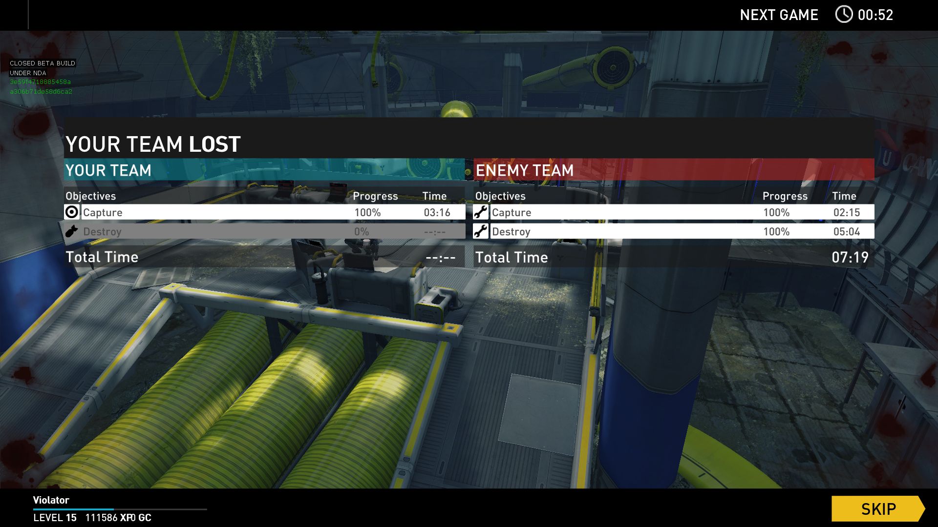 Died trying to arm a hack triangle when map ended (we had none down). Bushwhacker went into hyper t-bag mode in the end-game stats (PC isn’t powerful enough to vid) as per screenshots below: