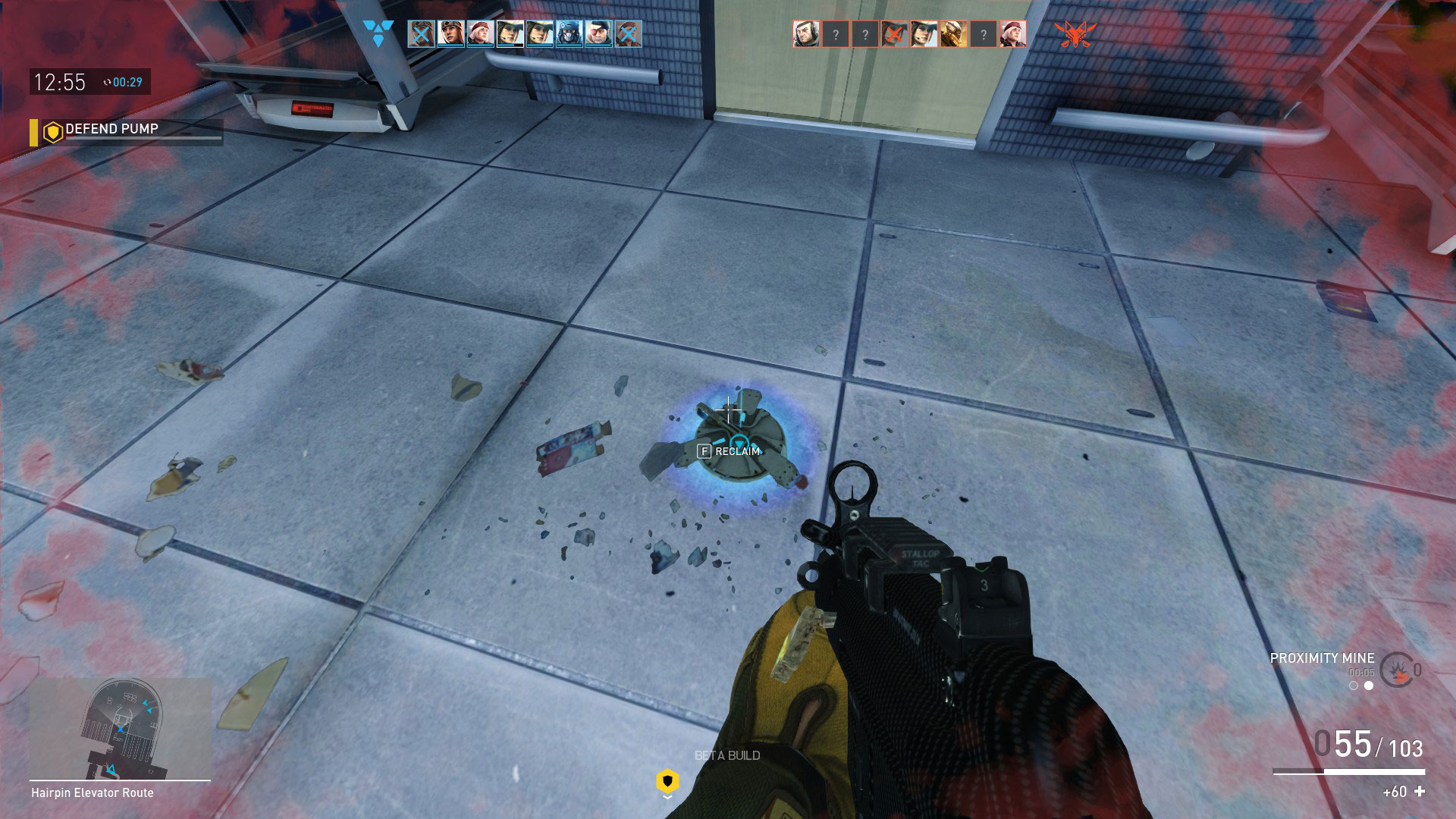 Moments later I am revived an CANNOT pick that mine from the floor, F key does nothing (see screenshot 02).