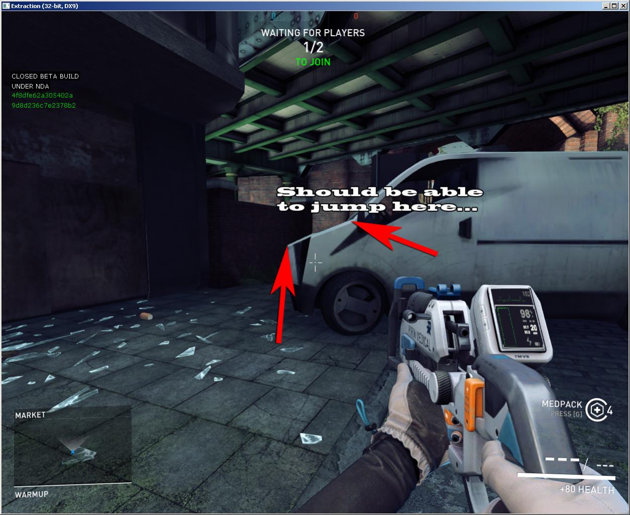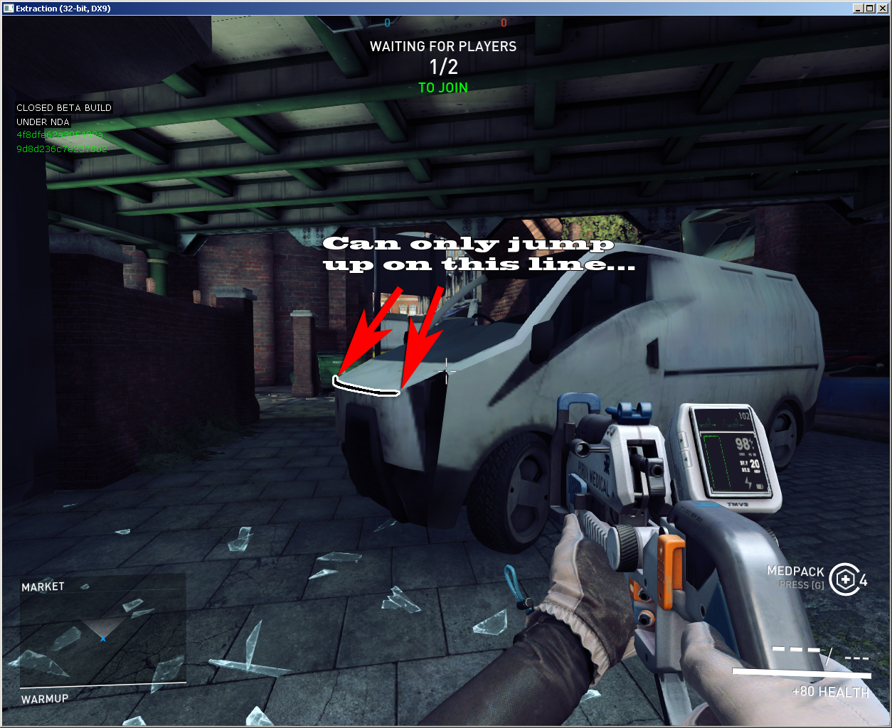 So maybe it’s just me but the front end of the van is the only part you can jump/crouch-jump on to. Though the entire hood has the appearance that it should be doable in one jump, possibly a crouch-jump from an angled approach.