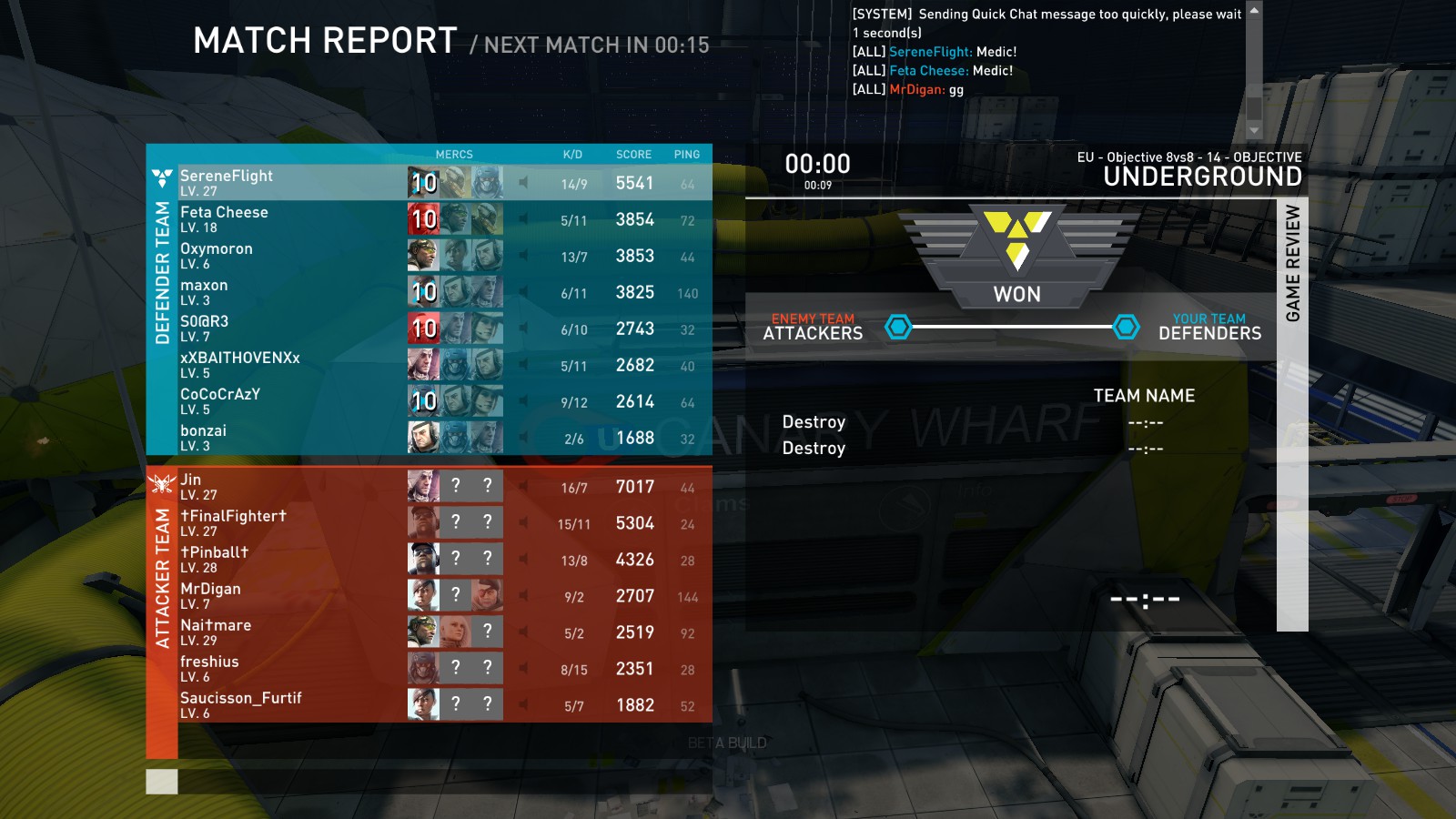 We had no medic and no one wanted to play one…I was in the spawn stealthed because it was me vs the whole other team, I guess I was supposed to go 1v7 and win.