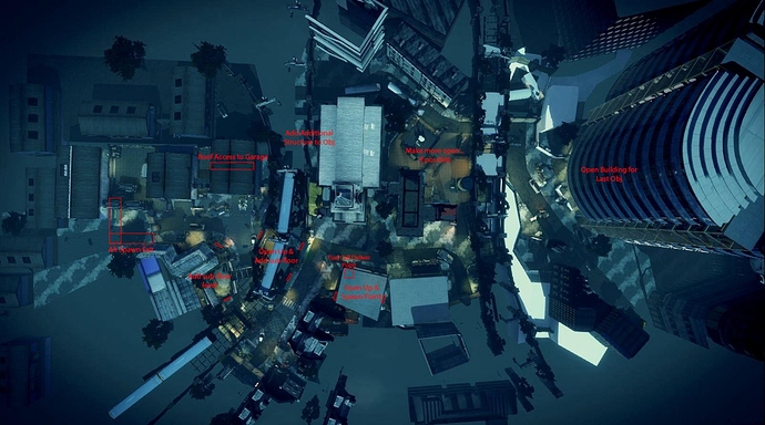 About the lift, 3 constructables plus that cover is just too much - it’s really hard to figure out what’s going on, and objective markers everywhere. How about replacing it with a “dead mans button” on the top of that platform (or something), so that enemies have to control the area to move the lift down. And maybe one constructable on the other side of the road to speed up lift so teams get 2 areas to focus on.