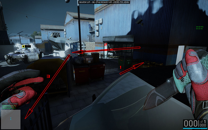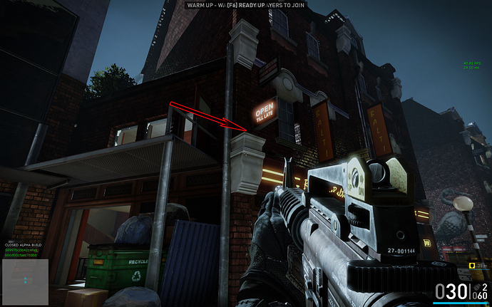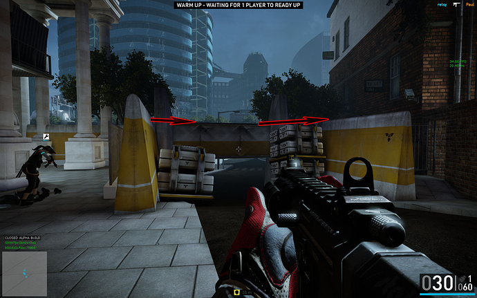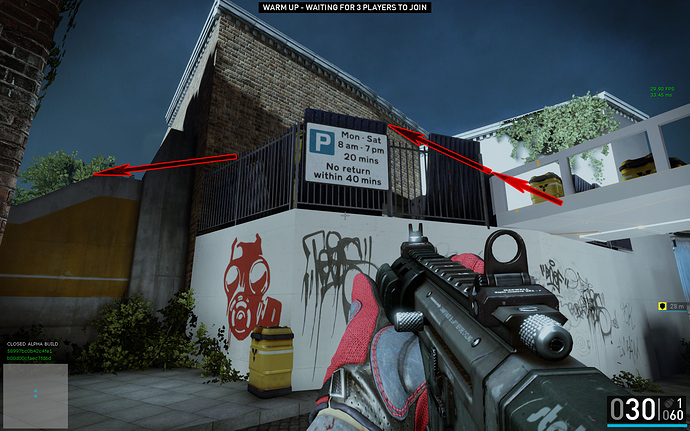 You can jump through this wall or onto the garbage and then over the blue fence. Both methods get you out of the map.