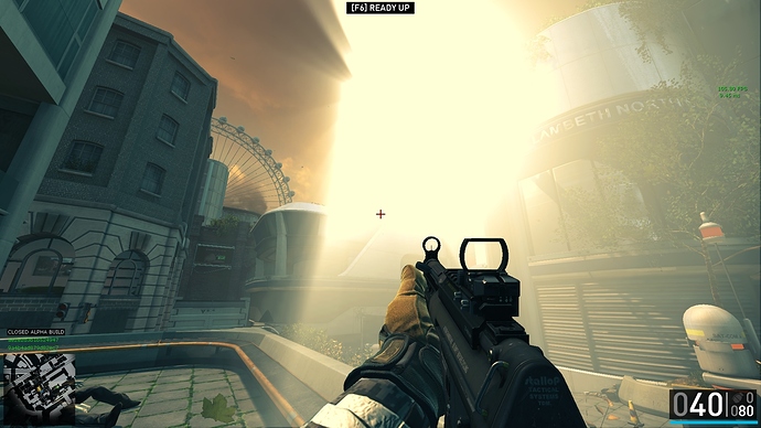 Waterloo, near the wall 1st stage, lobbed a grenade up at someone on the balcony and got huge flare from the Sun, which stayed after I looked down, and indeed seemed to follow me around thereafter.