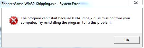When I click play I get this error “X3DAudio1_7.dll missing”